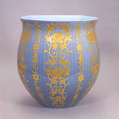 Yuri-kinsai. Underglaze gold decoration porcelain. Designated in the 1950s as a new glazing technique. The main feature is a highly transparent overglaze on gilded porcelain.