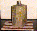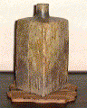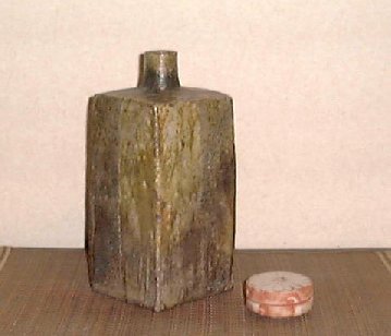 To illustrate the point, I've taken numerous photos of Matsuzaki Ken's ash-glazed square bottle (see below). Upon each different item on which I placed it, the work showed a slightly different temperament. Sometimes it looked stately, a bit proud, with an air of sophistication. While upon another item, like a piece of wood, it was more humble, approachable, and down-to-earth. The point is simple - using any suitable material as a base helps to compliment or highlight different colors on a pot.