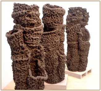 There is the one museum and a large exhibition hall called Oribe Square. Until November 4, Oribe Square offered a look at selected and award-winning works from the Mino International Ceramic Competition. The setting was a spacious hall with subdued lighting and the first works were from the Ceramics Design section, from which I couldn't get out fast enough (see photo of black and white cups below). The Ceramic Arts section was a highlight, though, of my visit to the park.