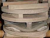 Kakurezaki has a very traditional workshop which has a pleasant wooden interior and a hard dirt floor. He had some pieces drying in the racks including large plates which were being given a wavy appearance from being pressed between two weighted boards.