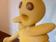 One visitor said Hinoda must have made these works under the influence of magic mushrooms! Not sure about that, yet Hinoda's imagination was running wild, as was the science-fiction landscape of Matsumoto Hideo set on the floor, while Kawaguchi Jun's colorful porcelain spiral hung on the back wall (see below photo).