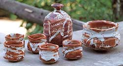Tea masters use the term zanguri to describe the distinctive quality of clay. It's a term of appreciation of the rough, unrefined style of potting that gives a piece a particular ambience. Yet for Shino it's used in a special way to describe the soft appearance of the clay that looks like it came out of the kiln unbaked. Some chajin say they can "taste" the raw clay of a Shino chawan. You'll be able to see that zanguri on Kobayashi's chawan.