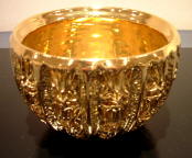No doubt the artfulness, technique and vision embodied in the golden chawan are commendable. You can't help but admire the intricate designs, perfect shapes and brilliant sheen on each bowl -- the man is a virtuoso.