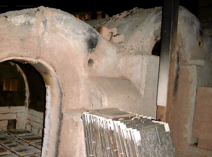 Firing takes place in a three chambered noborigama; all the pieces are fired in saggars for between thirty-six and forty hours at a peak temperature of between 1230-1240 degrees Celsius.